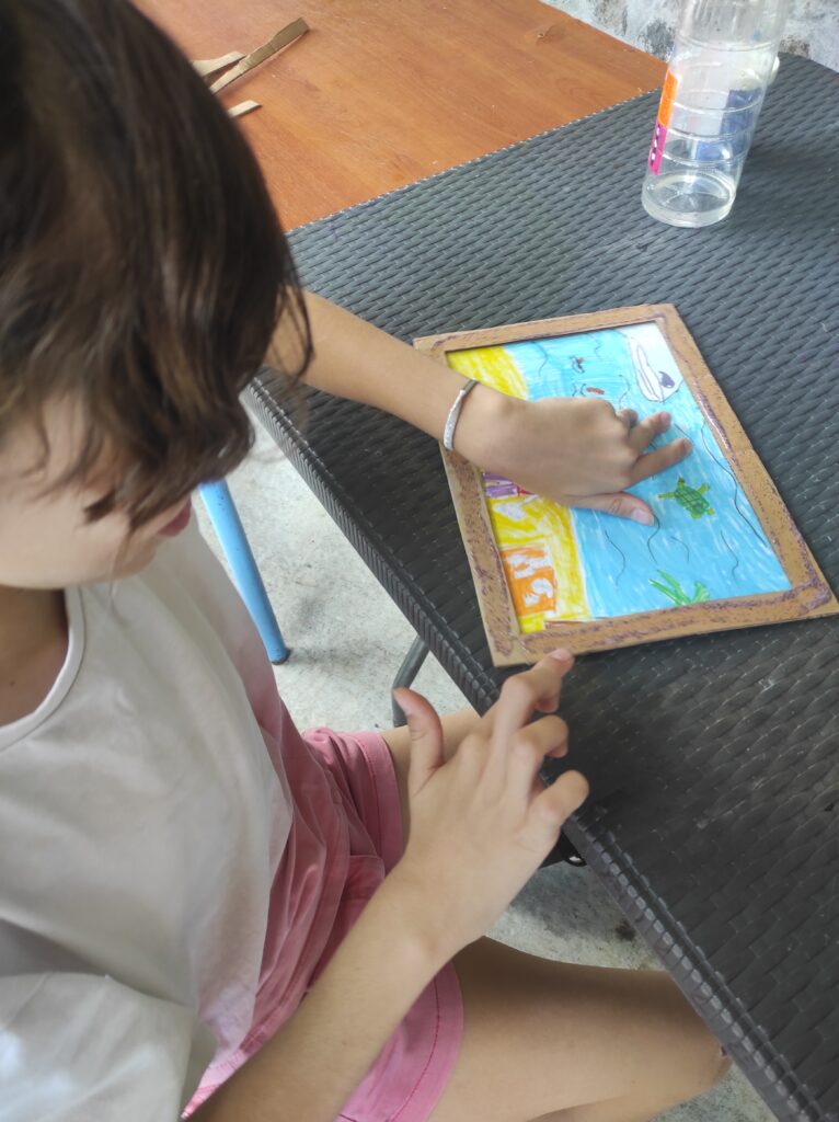 Travail ludique autour du livre (jeux, dessin, lecture, interprétation) et en fin de période une restitution sous forme d’exposition pour les enfants.